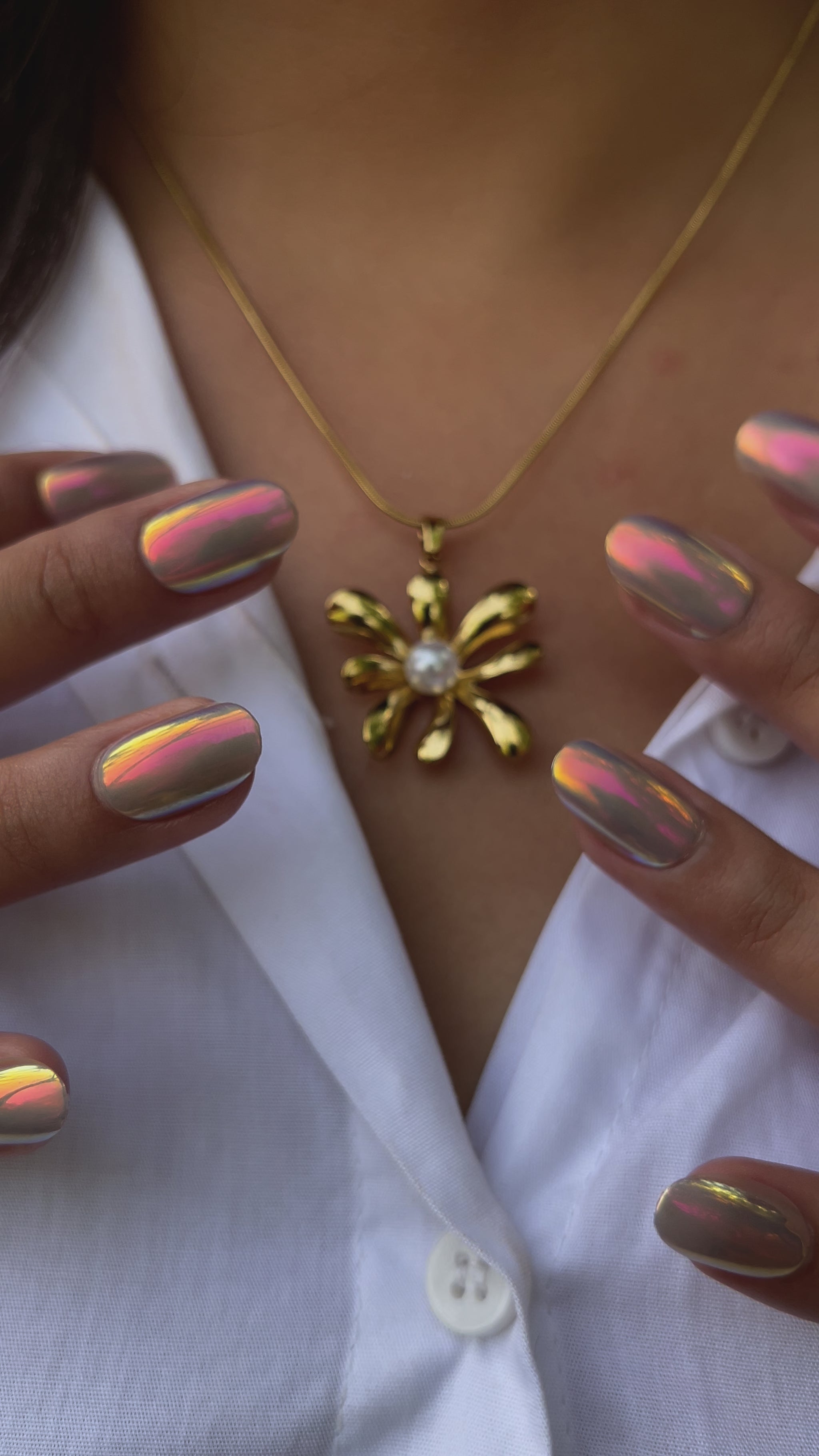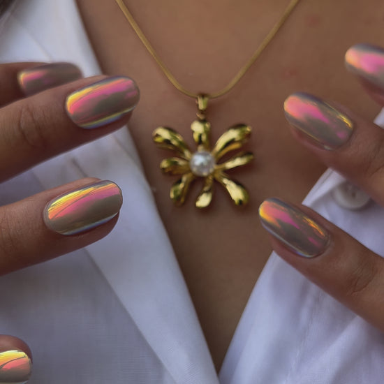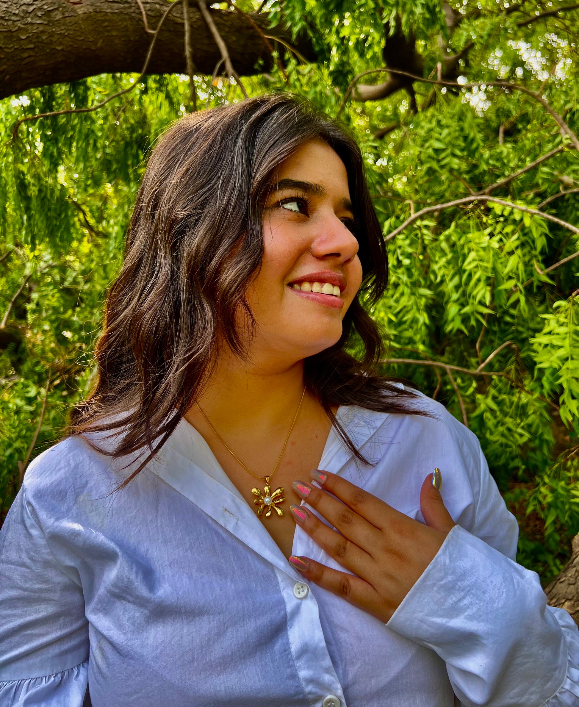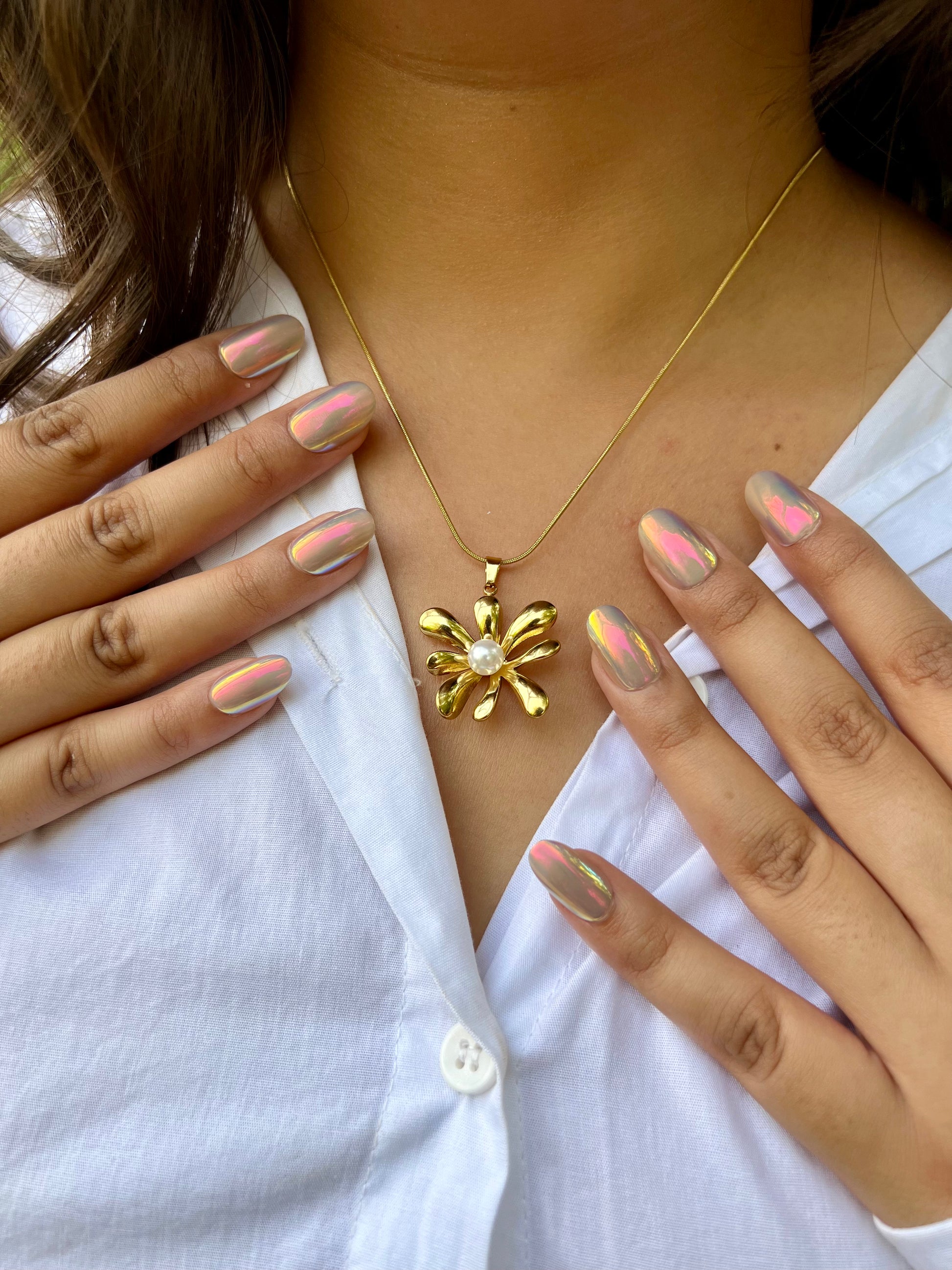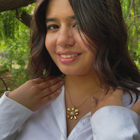 Delicate, radiant, and timeless—our Pearl Blossom Gold Necklace is crafted for the woman who carries elegance like second nature. With a blooming floral design and a glowing pearl at its heart, this piece captures the essence of soft beauty and inner strength.