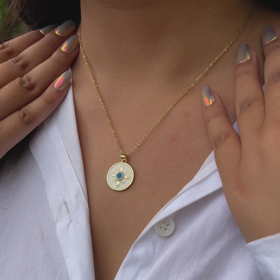 Radiate like the sun and guard your peace with grace. The Solar Shield Gold Necklace is your golden reminder that your light is your superpower.