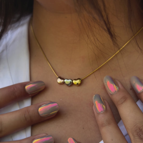 Introducing the Tricolor Heartbeat Gold Necklace — a tribute to love, unity, and strength. Featuring three dainty hearts in stunning gold, silver, and rose tones, this necklace beautifully captures the rhythm of emotions and the harmony of colors.